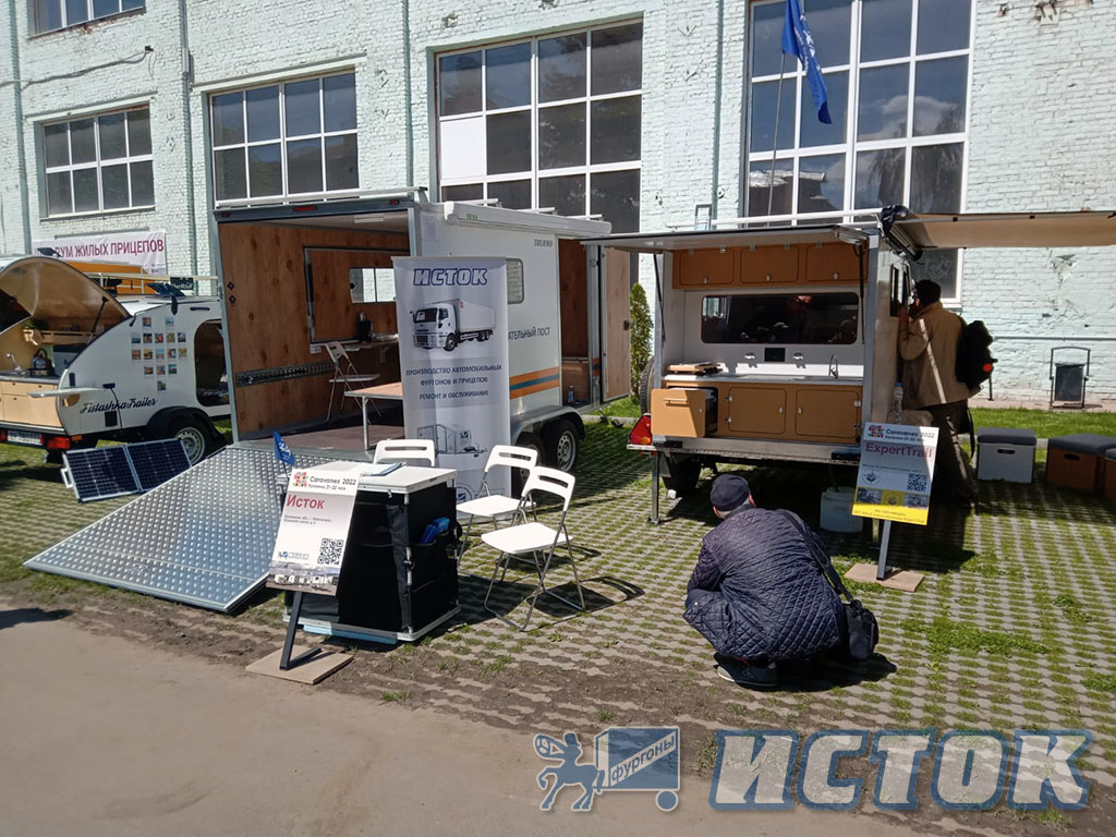 В качестве экспонатов были представлены следующие модификации прицепов ИСТОК: прицеп для перевозки мототехники, прицеп автодом (караван) и прицеп внедорожный кемпер.