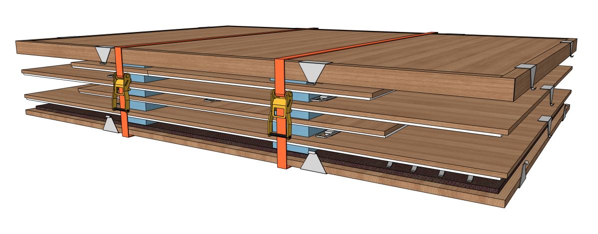 - Удобная логистика. Компактные габариты в транспортном положении (штабель 2х3х0,5 м) позволяют перевозить быстросборный модуль любым грузовым автомобилем или прицепом.