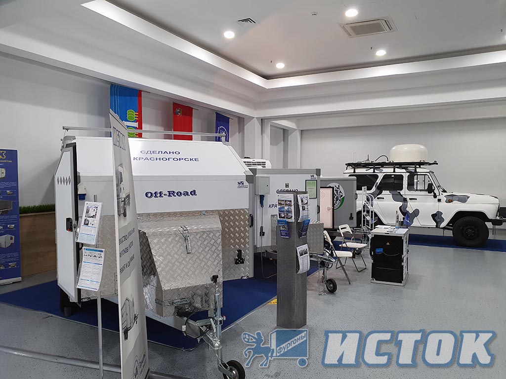В свою очередь, ИСТОК представил обновленный парк из трех экспонатов в виде легковых прицепов-фургонов специального назначения :