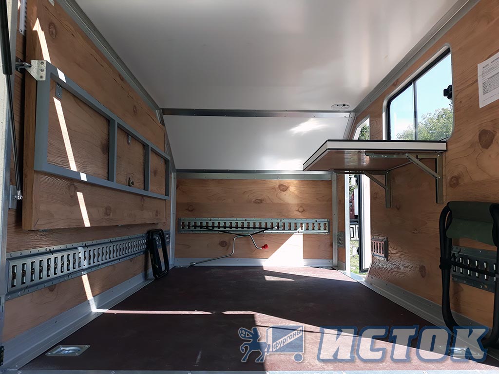 Укомплектование фургона мебелью и освещением, откидными спальными полками и складным столиком, люками, окнами, дверями и подъемными створками, установка багажного ящика на дышле под канистры или баллоны, а также боковых багажных ящиков позволяют использовать туристический прицеп Исток в качестве кемпера или автодома. Наличие крепежных элементов (такелажные кольца, рейка и т.д.), позволяет перевозить внутри фургона любые виды грузов, в том числе мототехнику (мотоциклы, квадроциклы, снегоходы), которые могут быть востребованы на отдыхе.